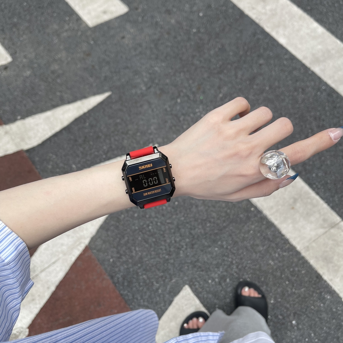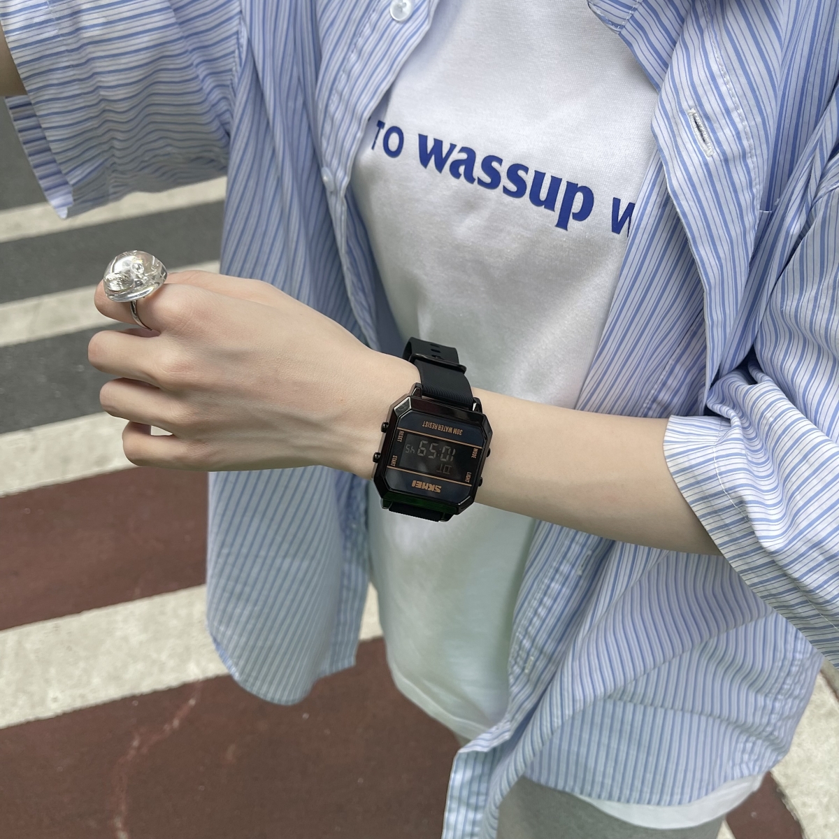 Youth electronic watch for men, student fashion trend sports square digital display waterproof small square watch