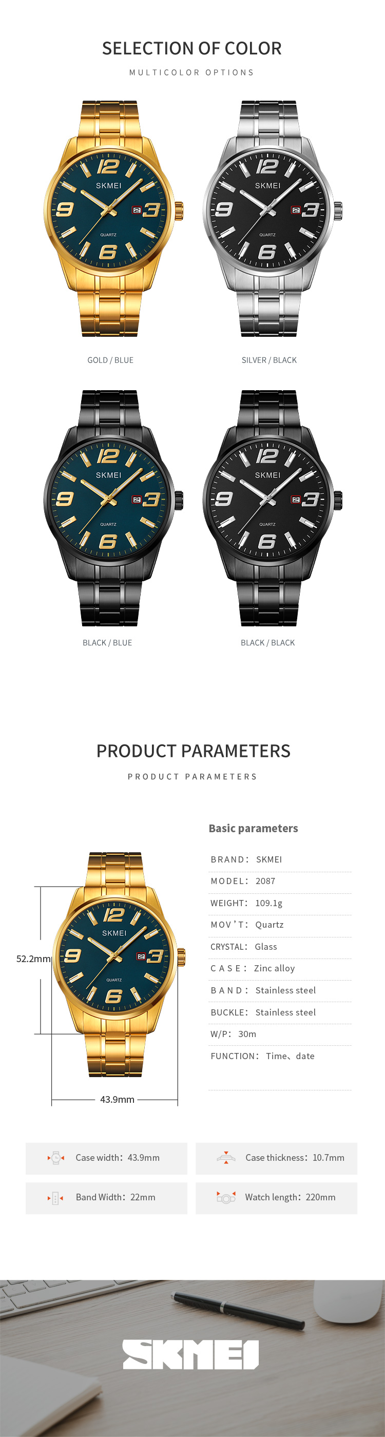 Mov't:Quartz Case:alloy case (43.9mm*52.2mm) Band:Steel W/P:30 Meters Waterproof Function:Time,date Weight: 109.1g