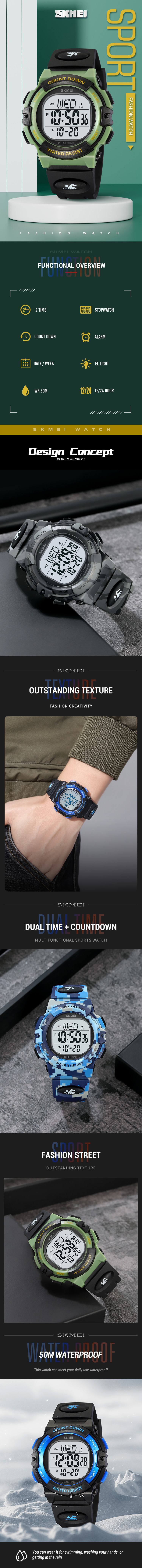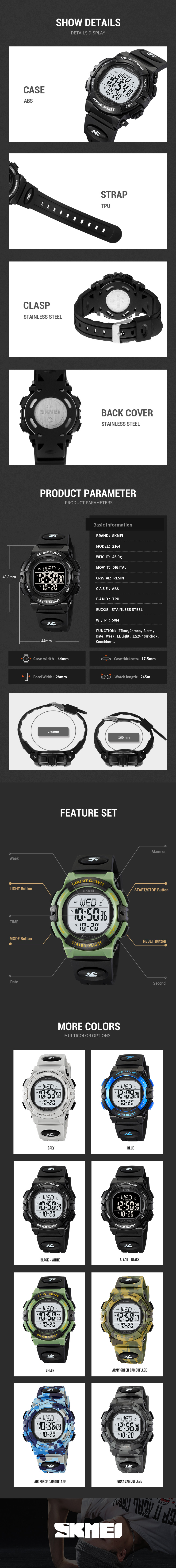 Mov't:Digital Case:ABS (44mm*48.8mm) Band:PU W/P:50 Meters Waterproof Function:2Time,Chrono,Alarm,Date,Week, Led light,Count down time,12/24 Hour clock. Weight:45.9g