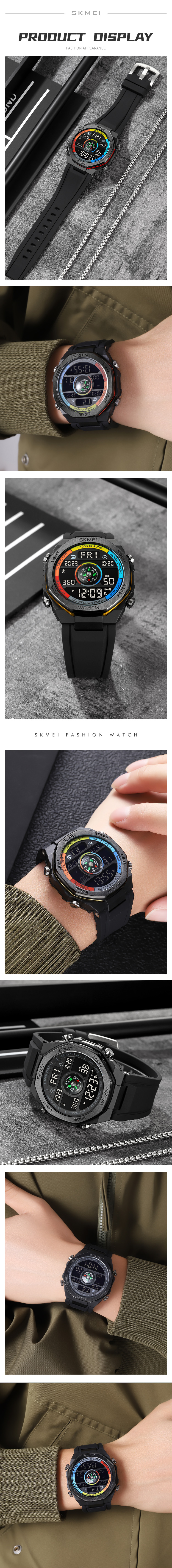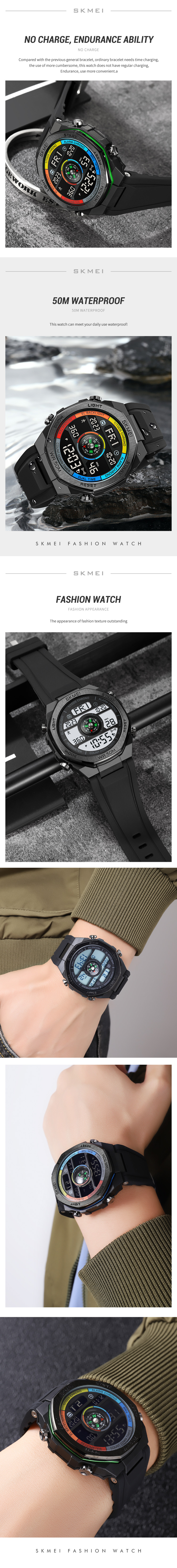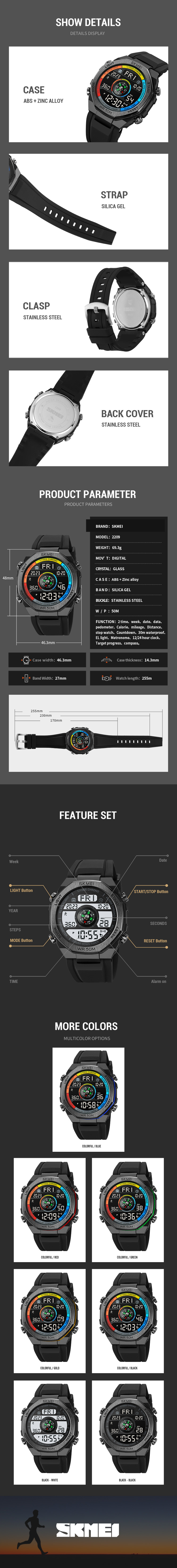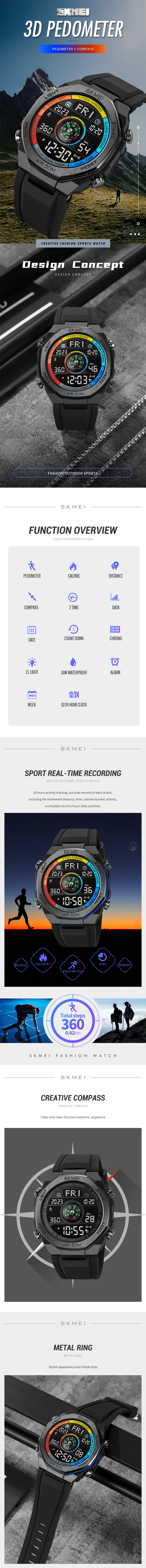 Mov't:Digital Case:alloy(46.3mm*48mm) Band:Silicone W/P:30 Meters Waterproof Function: 2 Time,Week,Date,Calorie, Pedometer,Compass, Alarm, EL light, 12/24hour clock. Weight:69.3g