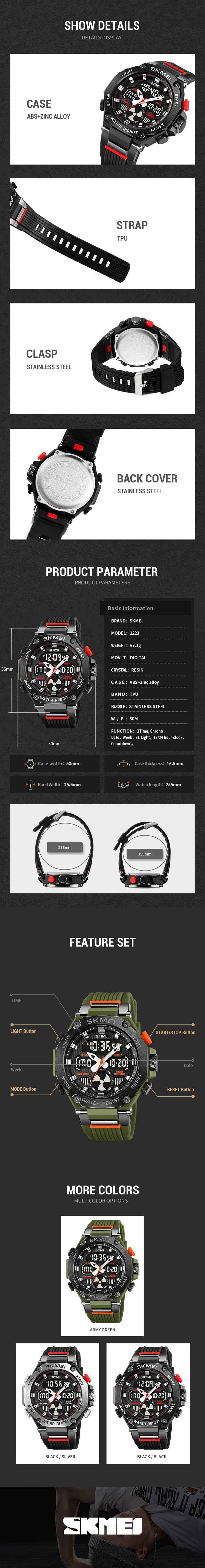 Mov't:Digital Case:alloy (50mm*55mm) Band:TPU W/P:30 Meters Waterproof Function:3Time,Chrono,Alarm,Date, Week,Led light,12/24 Hour clock. Weight:67.1g
