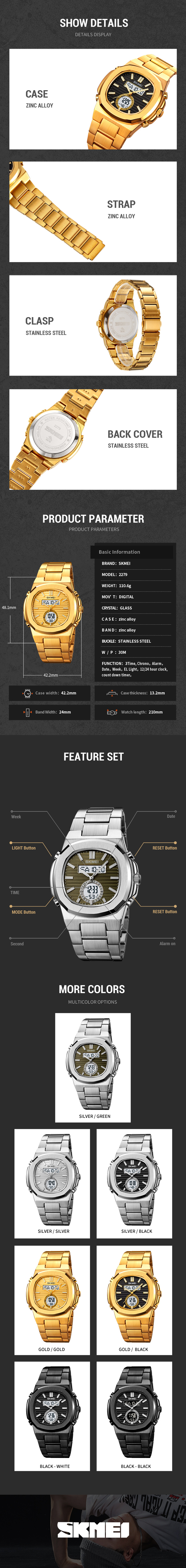 Mov't:Digital Case:alloy(42.2mm*48.1mm) Band:alloy steel W/P:30 Meters Waterproof Function:3 Time,Chrono,Alarm,Date, Week,Led light,12/24 Hour clock. Weight:110.6g