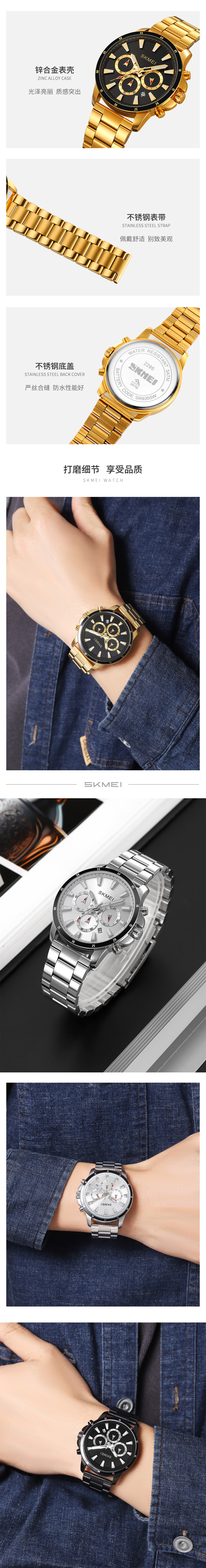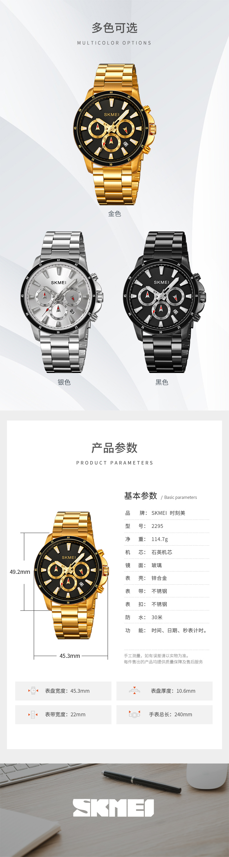 Mov't:Quartz Case:Zinc alloy(45.3mm*49.2mm) Band:stainless steel W/P:30 Meters Waterproof Function:Time,date,stopwatch Weight:114.7g