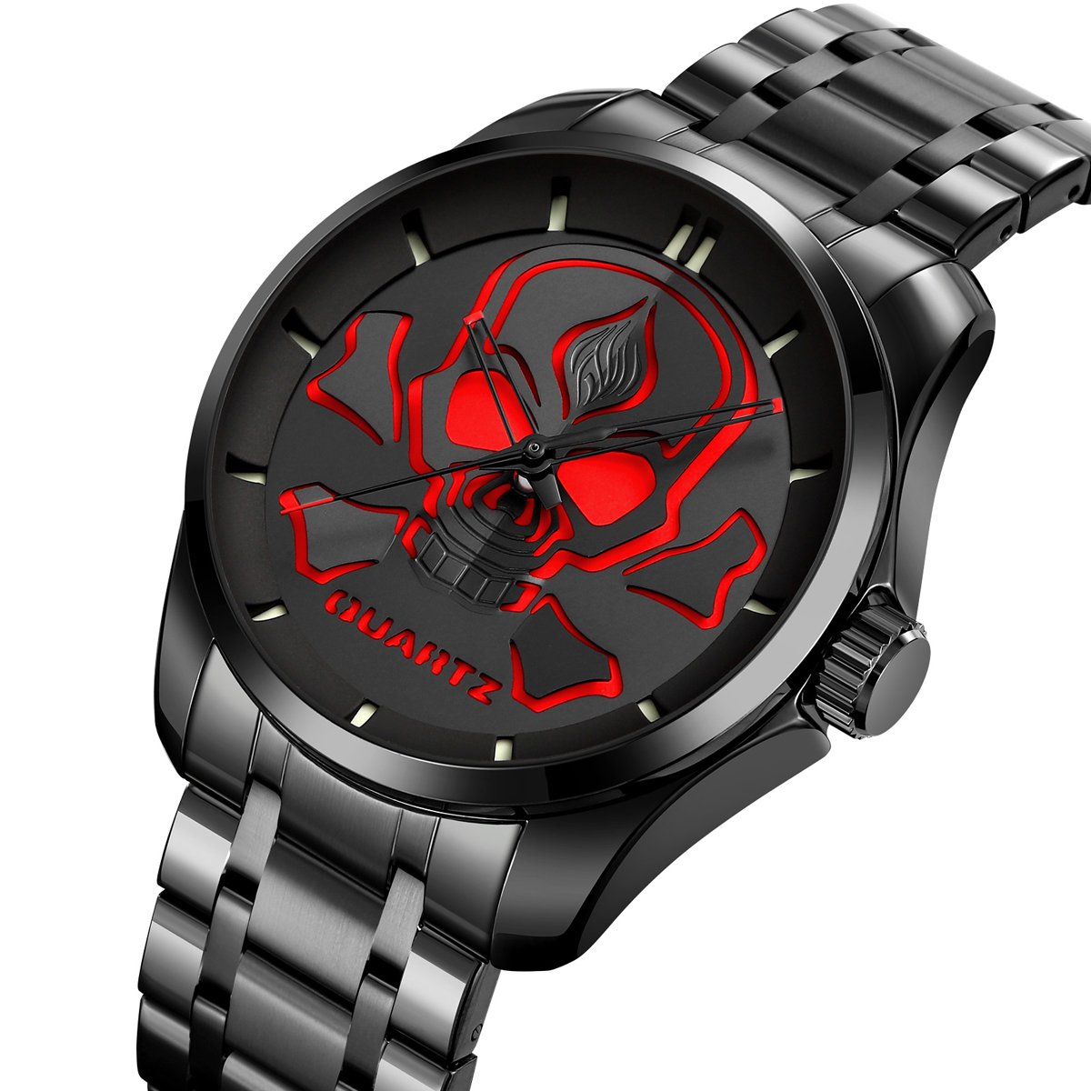 Mov't:Quartz Case: zinc alloy 44.5mm*49.5mm) Band:Stainless steel W/P:530Meters Waterproof Function:Time Weight:135.1g
